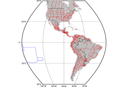 Creates a basic or fancy basemap with axes, fill, and titles. Several map projections are available, and the user may specify separate tick-mark intervals for boundary annotation, ticking, and [optionally] gridlines. A simple map scale or directional rose may also be plotted.