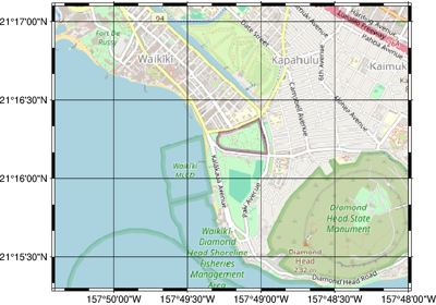 Inset map showing a rectangular region
